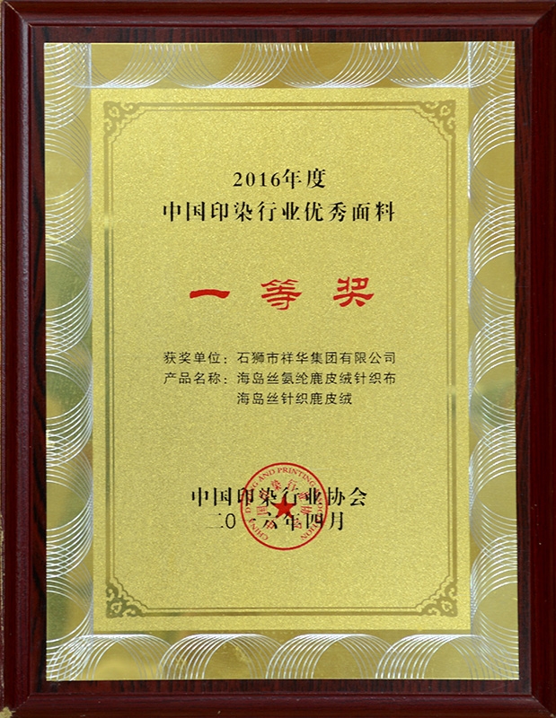 中國(guó)印染行業(yè)優(yōu)秀面料一等獎(jiǎng)