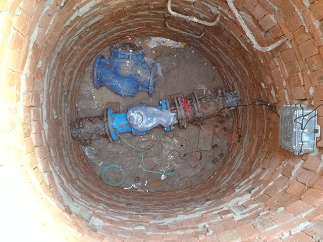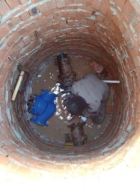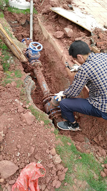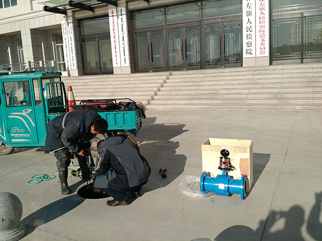 電池電磁流量計(jì)替換大口徑機(jī)械式水表安裝現(xiàn)場(chǎng)