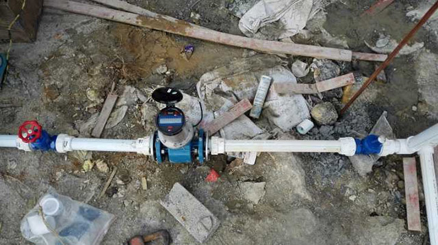 城鄉(xiāng)一體化供水計(jì)量電池供電電磁流量計(jì)安裝現(xiàn)場(chǎng)